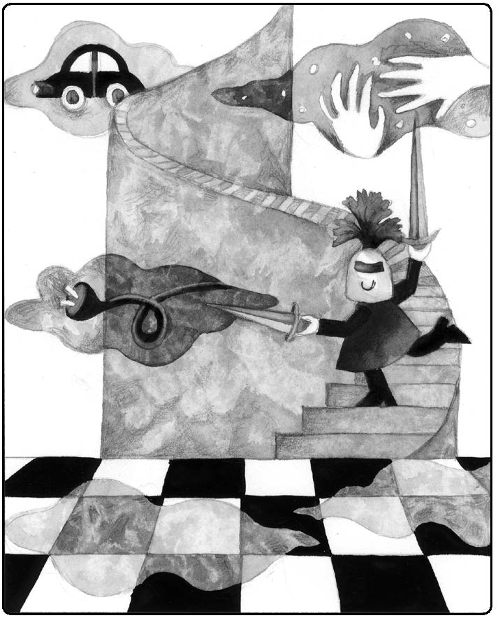 “I’m not as afraid of social anxiety as a word because I’ve taken social anxiety and I’ve turned it into a person instead of a condition. It’s not a mother, it’s not a father, it’s just this person or this entity and she wants me to take care of myself. She doesn’t want me to be embarrassed. When I do something that she thinks I could not do, she is impressed. I really like that because it is not a judgmental thing. It is like someone saying, ‘You really should wear a jacket, it’s going to rain.’ But you go out there without a jacket and it doesn’t rain, and they say ‘OK, you did it; you’re still a good person.’ So that’s how I’m thinking about it. [She now comprehends that those ogres, worry and anxiety, have been in her life to help her. They just do it in a clumsy way and she has found a better way. Julie will win this game for good.]”